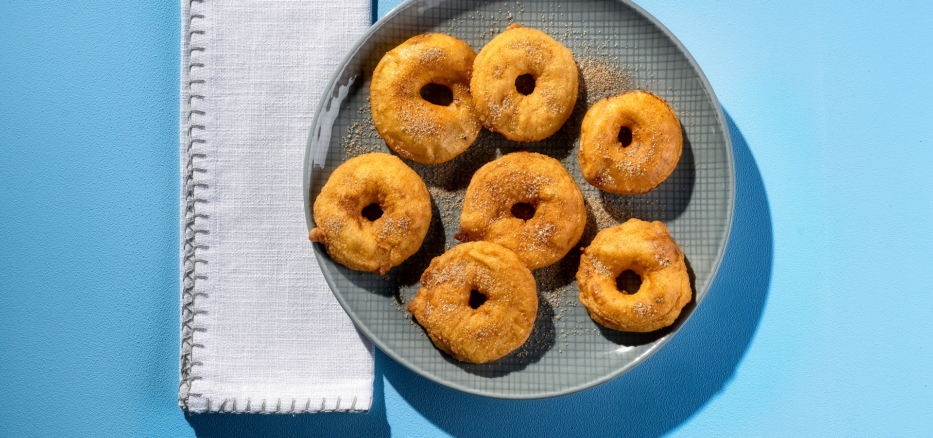 Die Apfelbeignets mit Zimt & Zucker bestreut servieren.