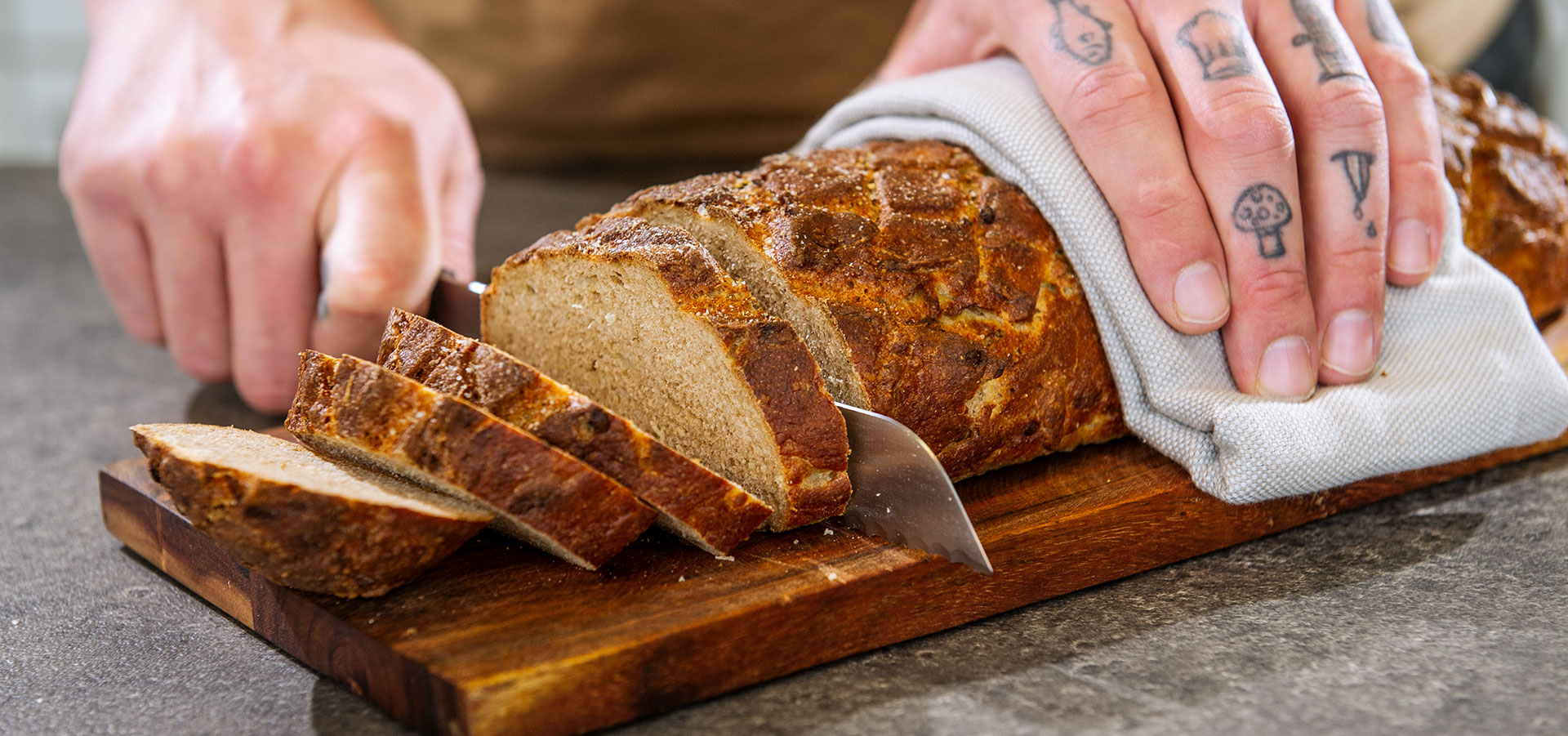 5. Preheat the oven to 220 °C, shape the bread into a roll, twist it a little and score approx. 1 cm deep on the top.