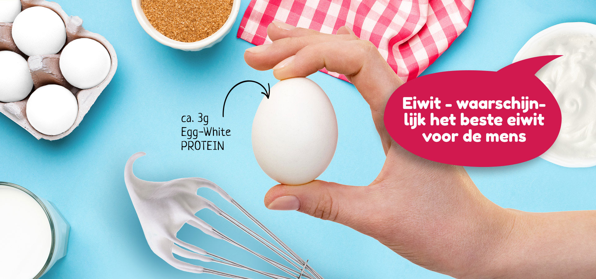 Het witte deel van het ei bevat namelijk zo goed als geen vet en heeft dus ook geen invloed op de cholesterolwaarde. En eiwit heeft nog een andere aantrekkelijke eigenschap: proteïne uit eiwit kan ook bij lactose-intolerantie worden geconsumeerd.